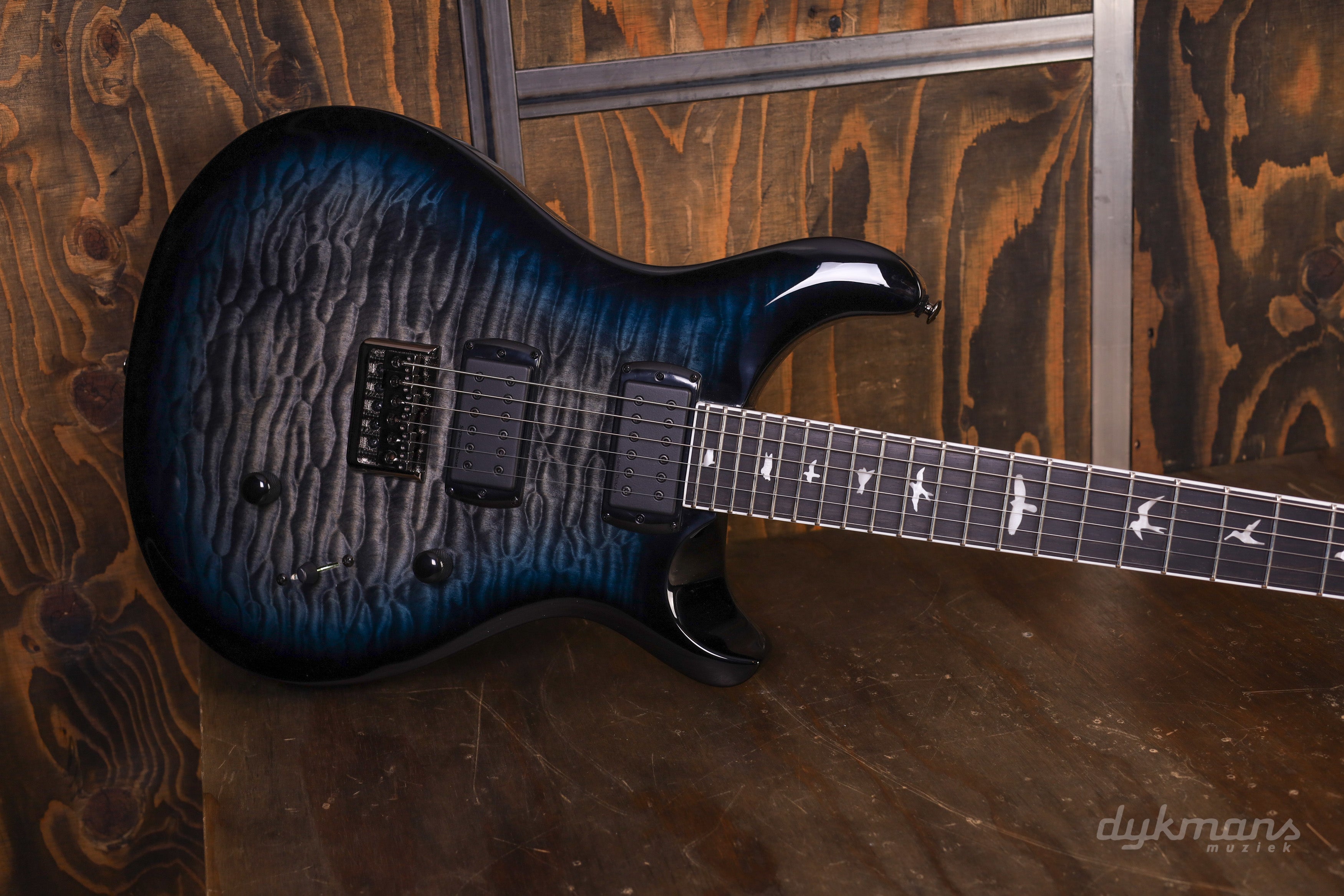 De vaste PRS plate-style string-through brug in combinatie met PRS-ontworpen stemmechanieken zorgt voor uitstekende stemvastheid en lange sustain. De opvallende Holcomb Blue Burst finish met zwarte chromen hardware geeft deze gitaar een moderne, professionele uitstraling die zowel op het podium als in de studio indruk maakt.