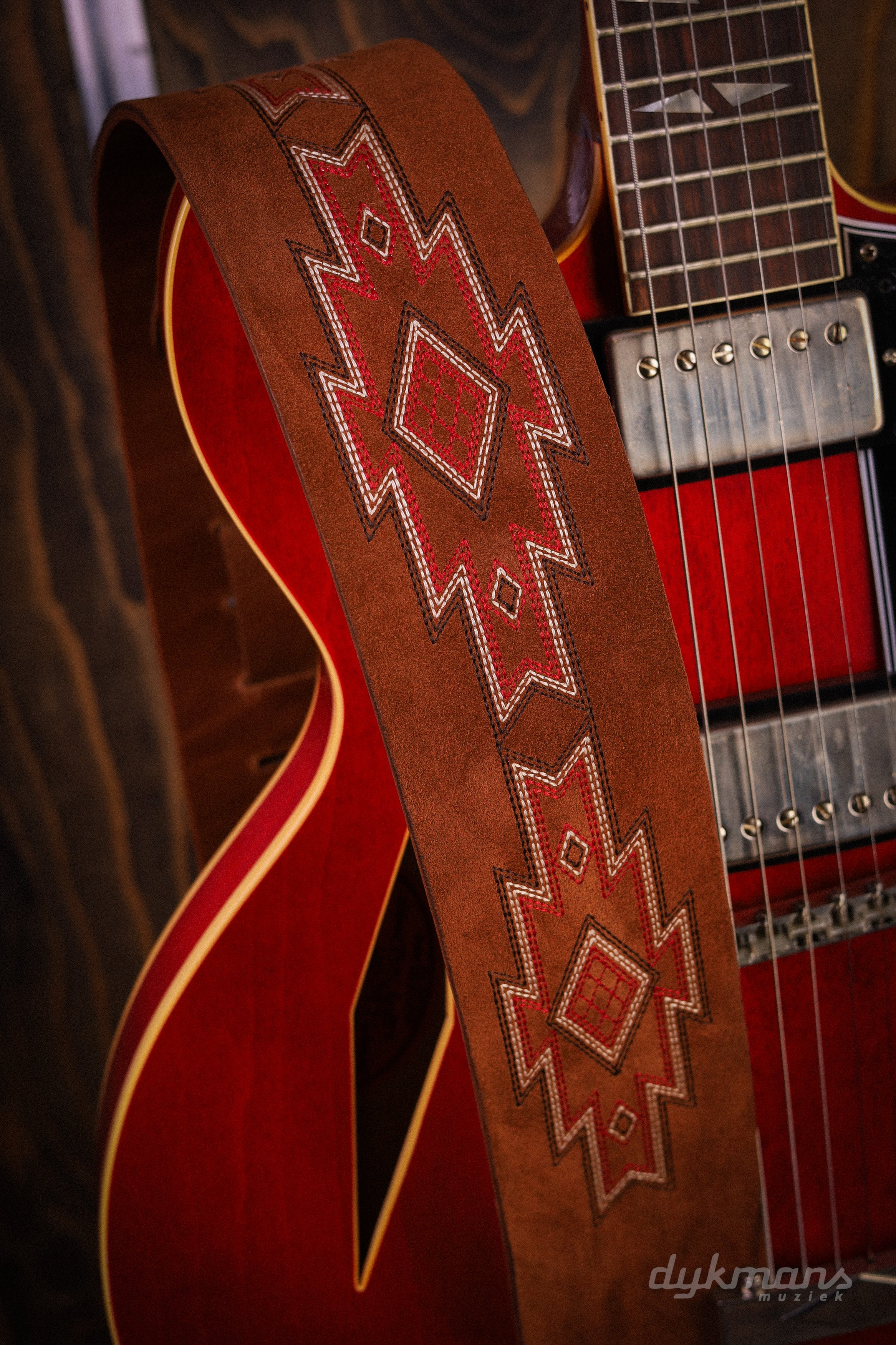 De Blue Bell Totem Strap Amber is een opvallende gitaarband met een uitgesproken vintage uitstraling en hoogwaardige afwerking. Het karakteristieke totem-patroon geeft deze strap een unieke, bijna handgemaakte look die perfect past bij gitaristen die hun instrument ook visueel willen laten spreken.