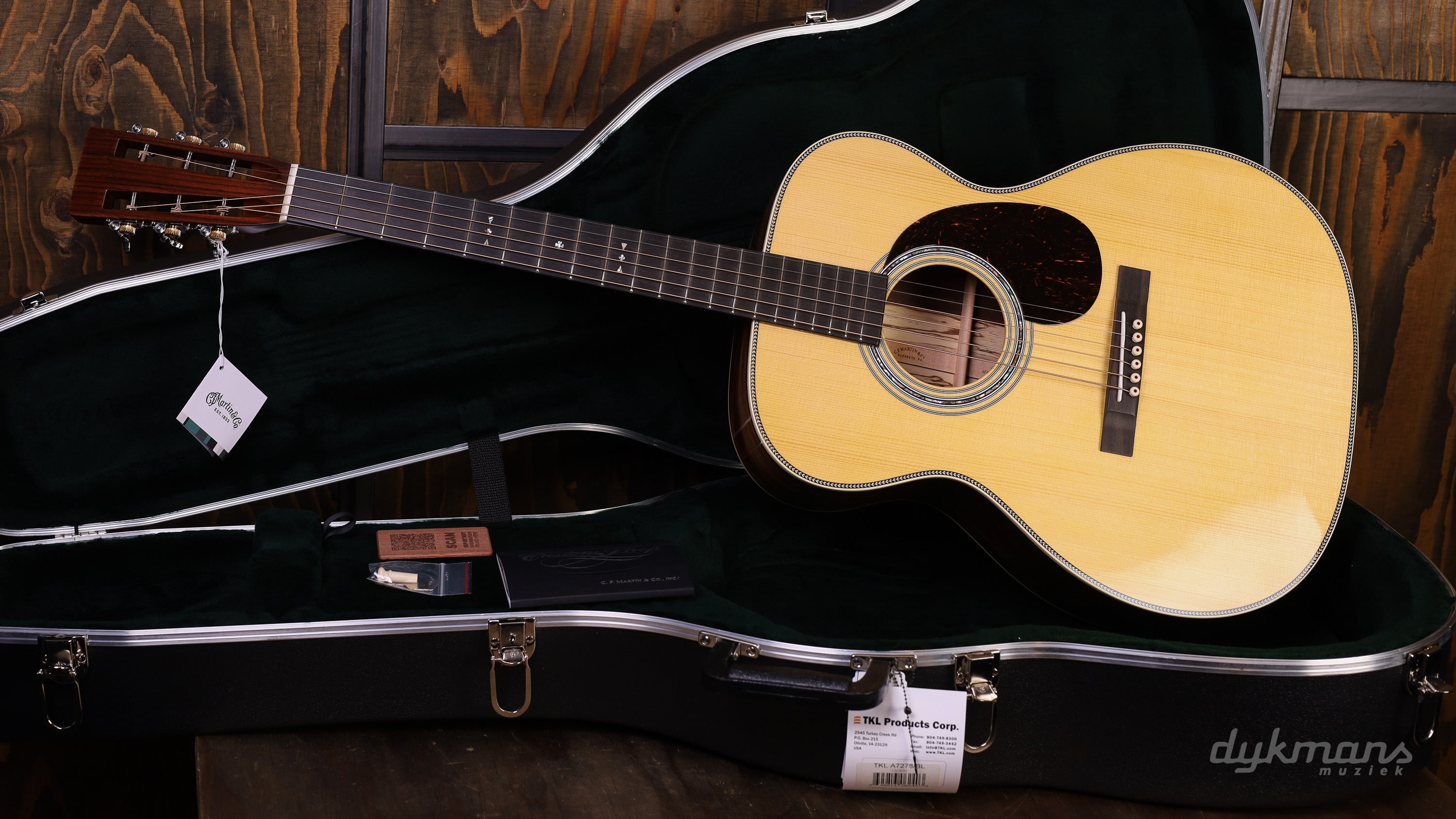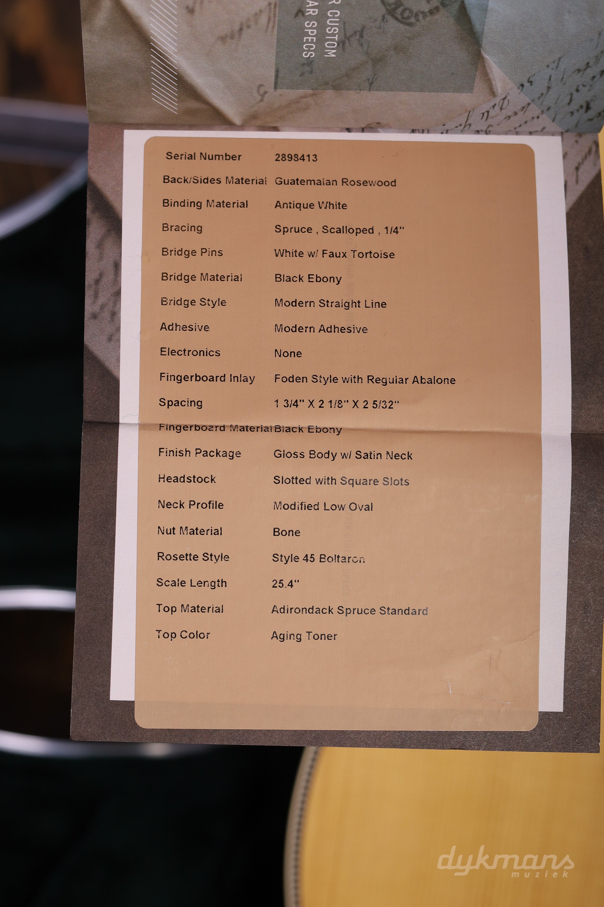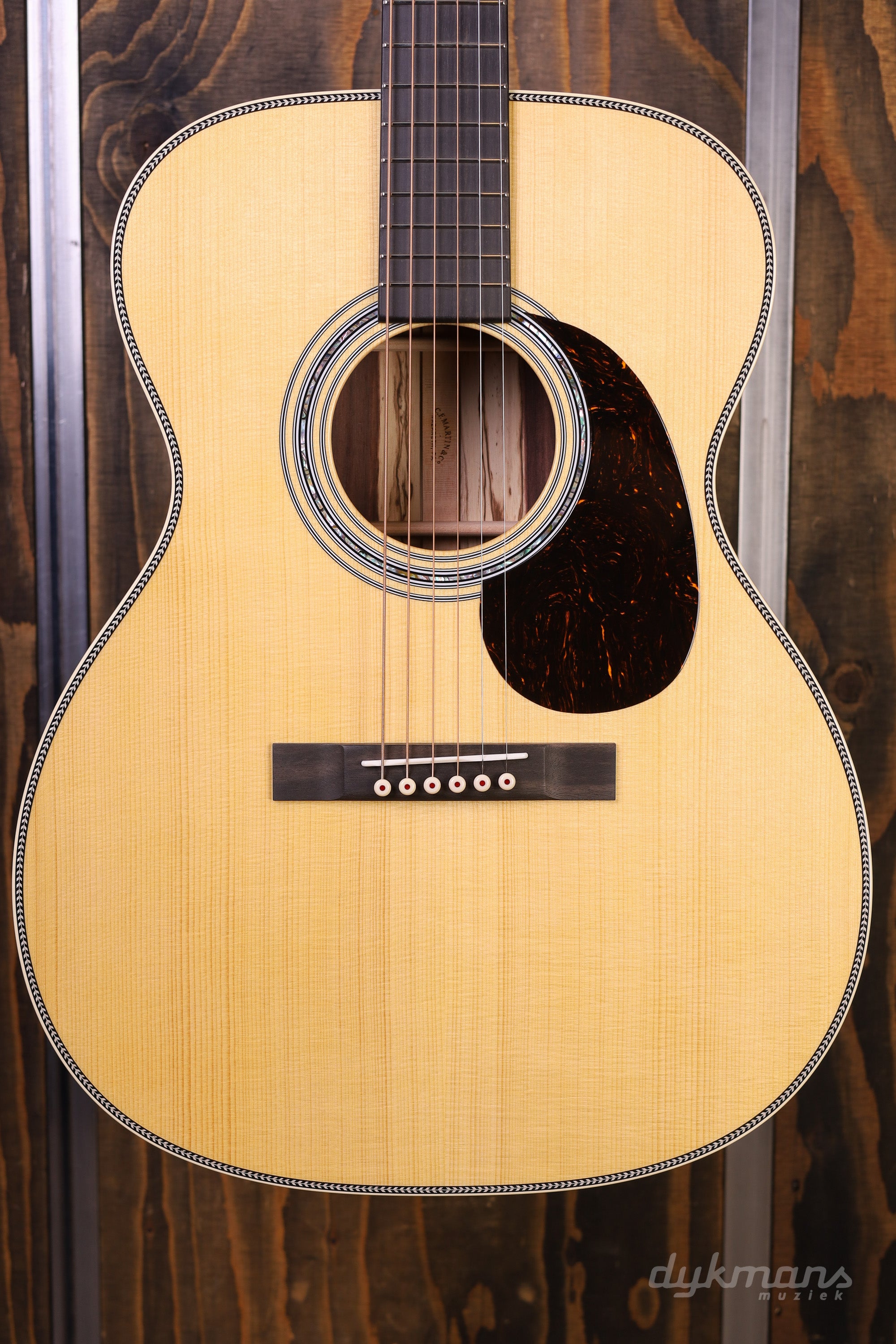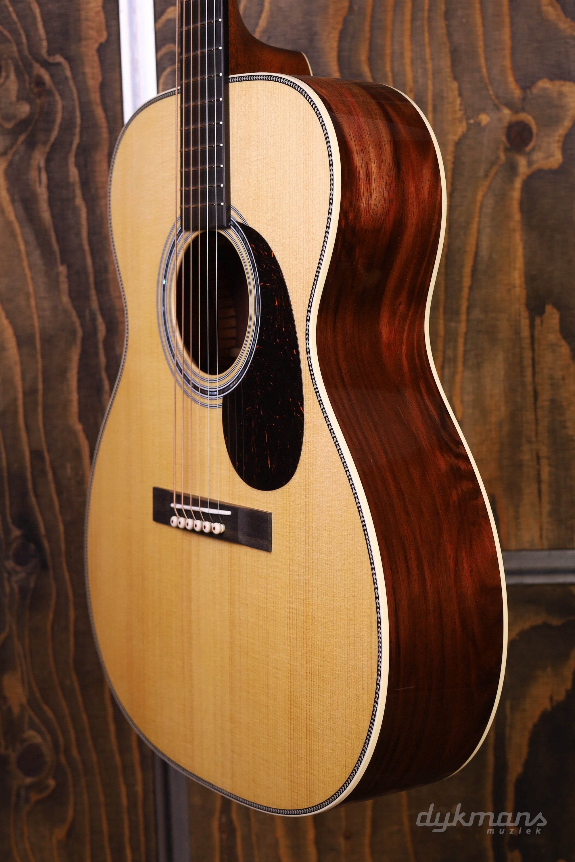 Bijzondere OM-14 uit de Martin Custom Shop hand geselecteerd in de Custom Shop lounge in Nazareth. Deze Martin heeft een Guatemalan Rosewood Zij- en Achterkant en Adirondack bovenblad.