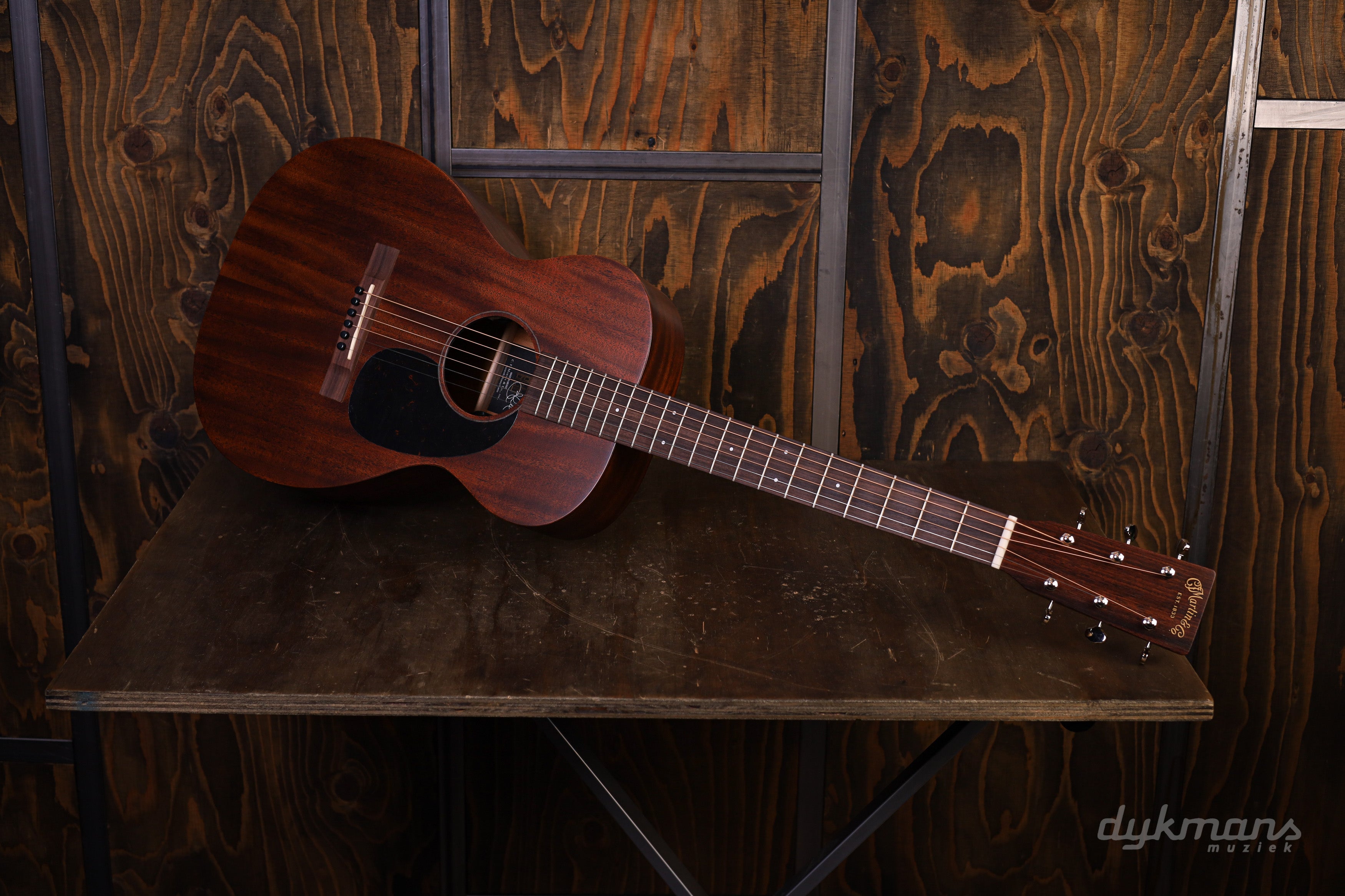Het volledig massief mahonie body, zowel top als rug en zijkanten, geeft de 0-10E Retro een toon die meteen herkenbaar is: rijke midden, heldere hoge tonen en een punchy aanslag die bijzonder goed werkt voor fingerpicking en singer-songwriter repertoire. De scalloped spruce X-bracing voegt helderheid en dynamische respons toe, zodat de gitaar ook bij zachtere aanslag goed reageert. De Martin E1 elektronica maakt de stap naar versterkt spelen eenvoudig, zonder het akoestische karakter aan te tasten.