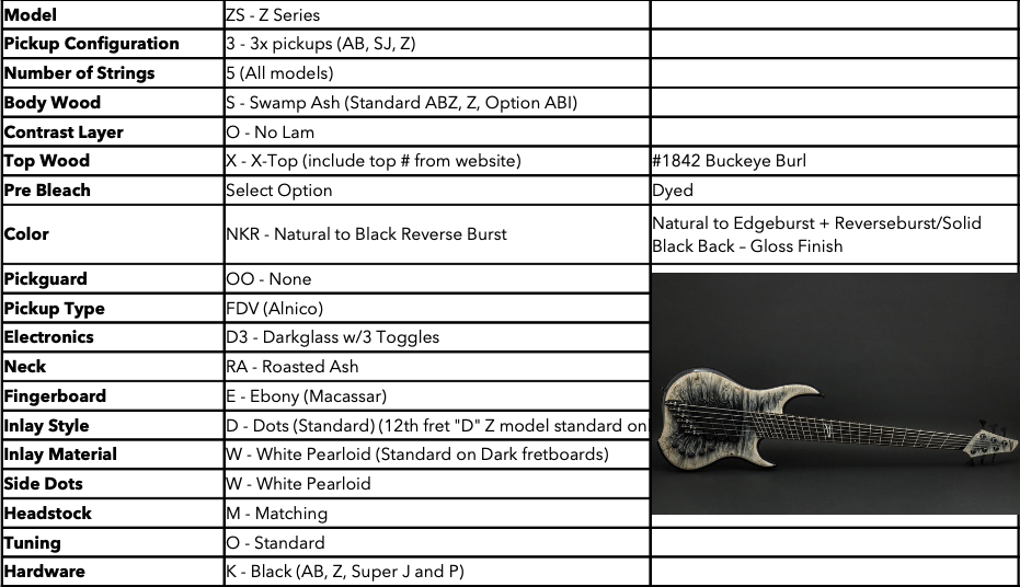 Dingwall Custom Shop Z3X-5 Natural to Edgeburst + Reverseburst